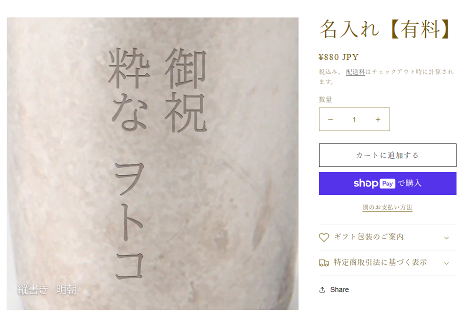 3. 名入れは商品「名入れ【有料】」をカートに追加してご注文ください