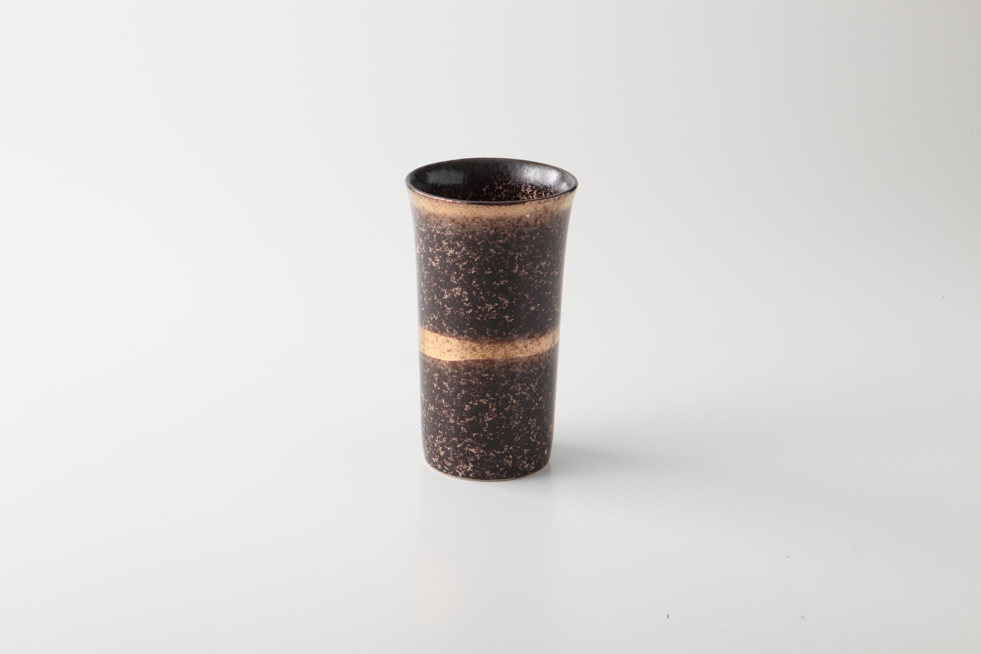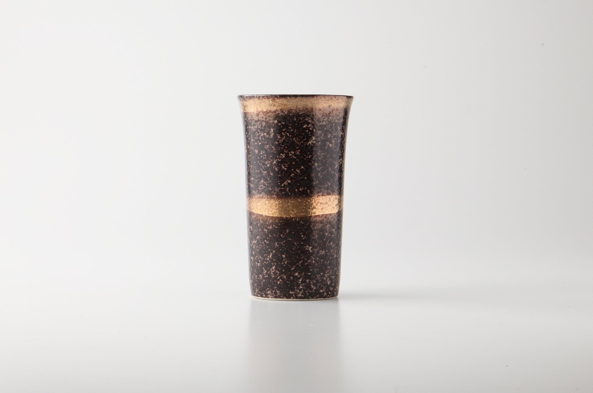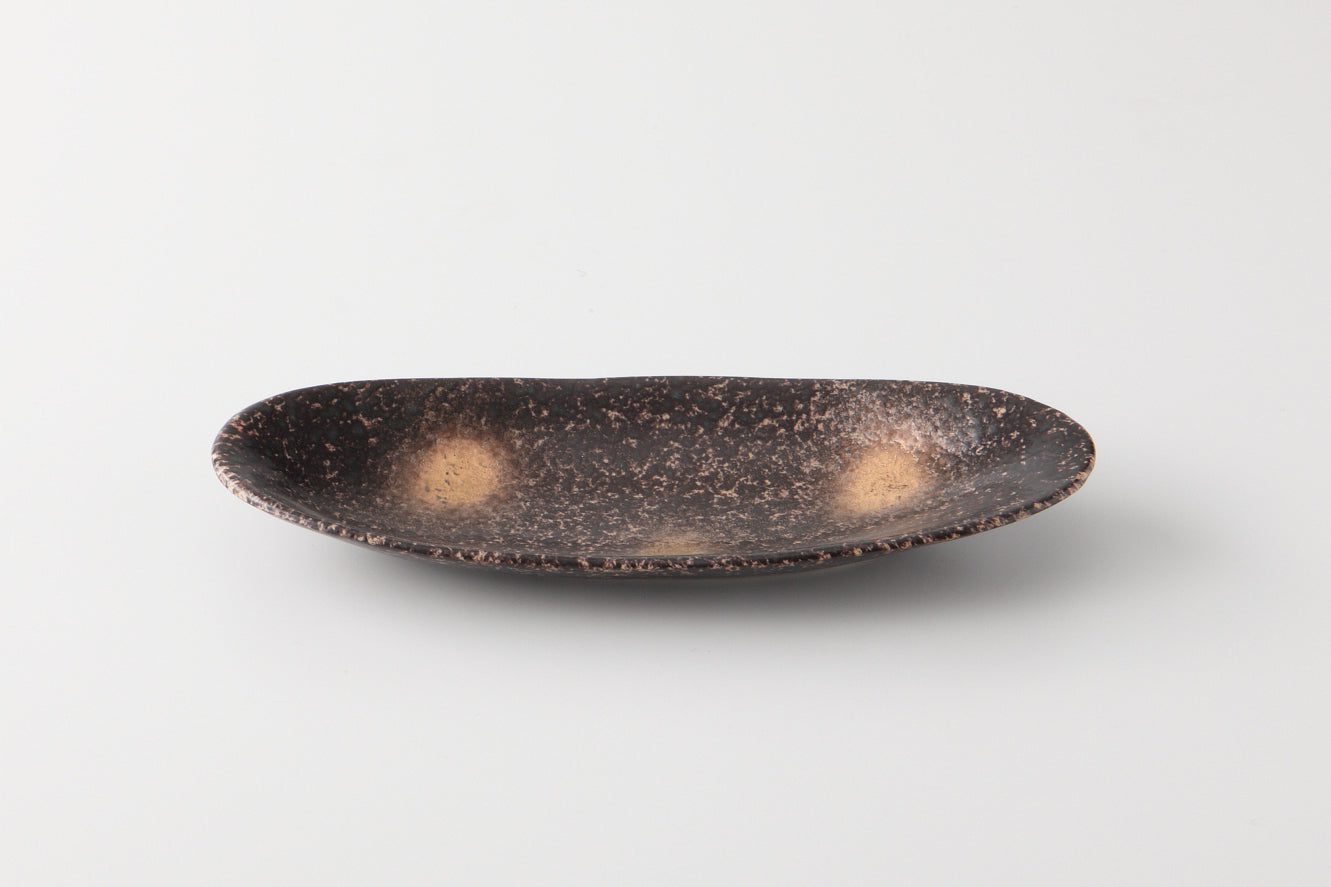 凹凸のある茶色の素地に金と銀でアクセントをつけた逸品です。