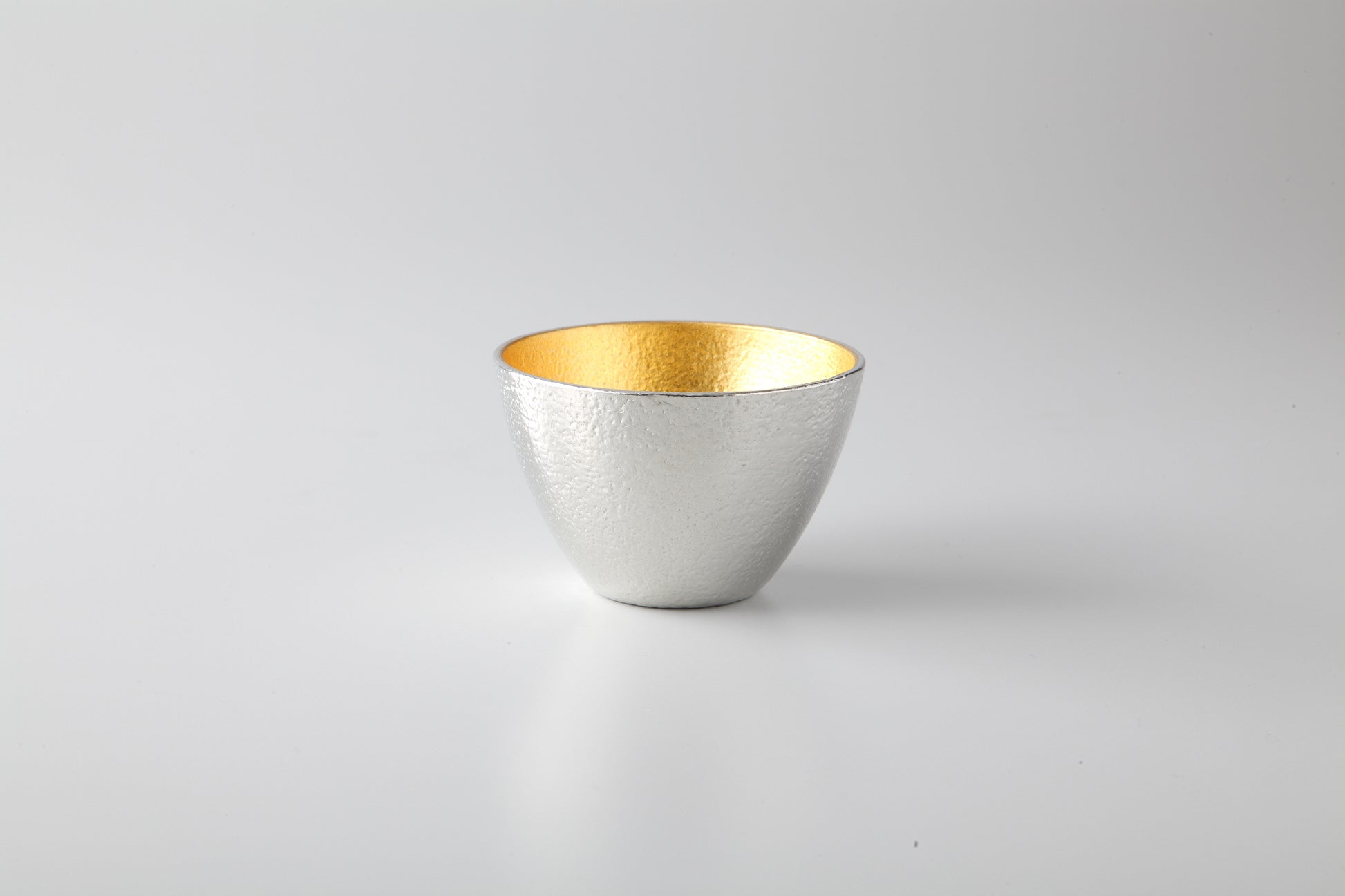 内側に貼った金箔が華やかな錫製のぐい呑です。