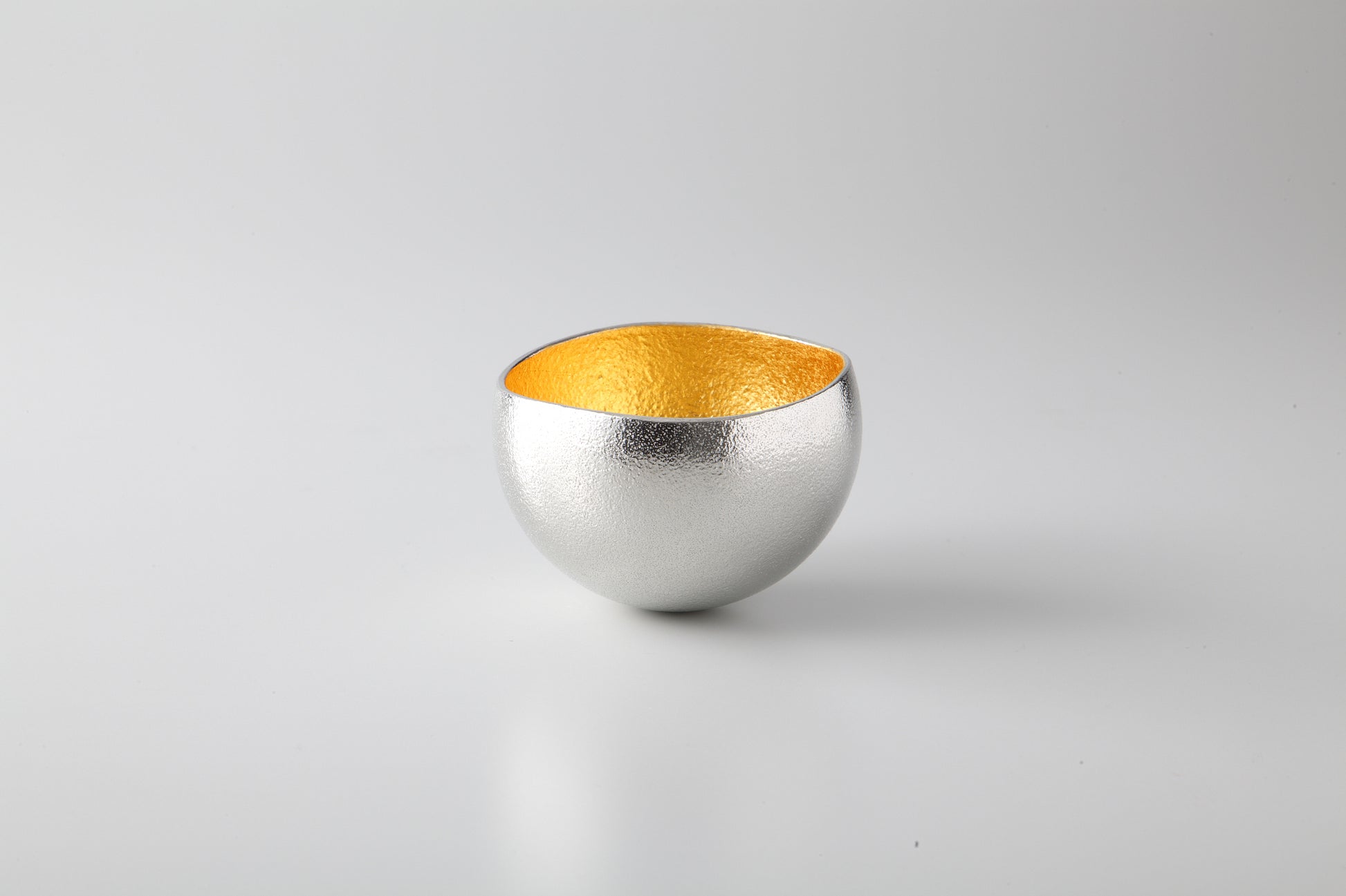 内側に貼った金箔によりゆらすと光が揺らめき、より一層お酒をひきたてます。わずかに形をくずすことで錫のやわらかな特性を表現したKuzushiシリーズは、金属でありながら、どこか素朴で温かみを感じさせる器となっています。 酒器として、あるいは前菜やデザート用の食器としてお好みに合わせてご使用ただけます。